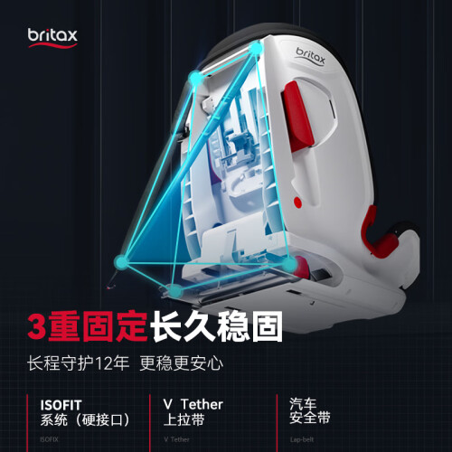 这款百变骑士二代安全座椅,头枕高度多档调节,座椅角度三挡调节;ISOfix硬接口,V-THETHER上拉带,车载安全带3重固定更周全;安全带定位勾--增加第四点固定点,锁定腰带位置,舒适安全;新增侧边防撞保护SICT,EPS蜂窝吸震,肩垫升级,防滑减压;5点式安全带锁扣增加红色边,紧急情况下能准确找到卡扣开关位置。