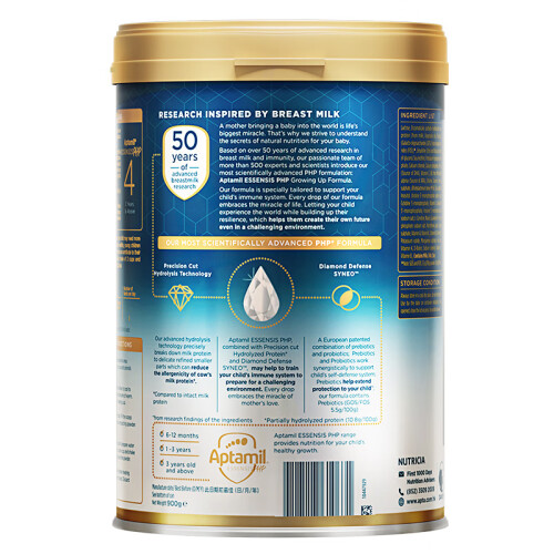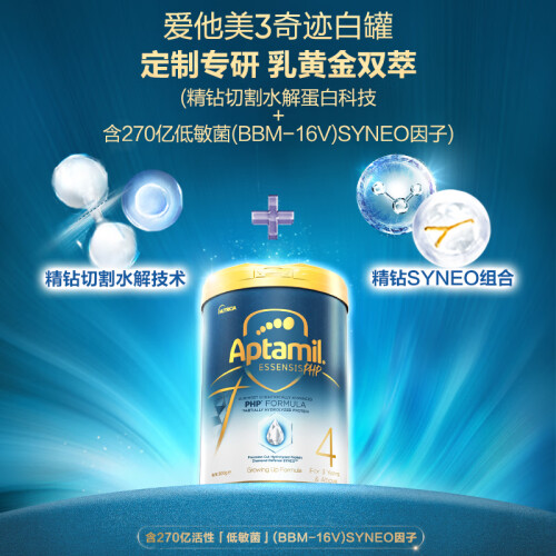 Aptamil爱他美奶粉品牌起源于德国,原是德国美乐宝集团创立品牌,后经过收购,目前已被达能集团收入麾下,是达能集团很具潜力的婴幼儿奶粉品牌,目前已经在德国、澳洲、英国、中国等多个国家地区畅销,是货真价实的国际知名品牌,ESSENSIS 是爱他美在2020年推出的超高端系列,这款奇迹白罐具有超前的精钻切割技术,精准切割牛乳蛋白致敏结构,保留耐受分子,预防宝宝蛋白过敏,增强蛋白耐受度,更有精钻防御SYNEO益生菌+益生元超强组合,模拟母乳结构,帮助宝宝建立健康肠道菌群环境,增强自护力。