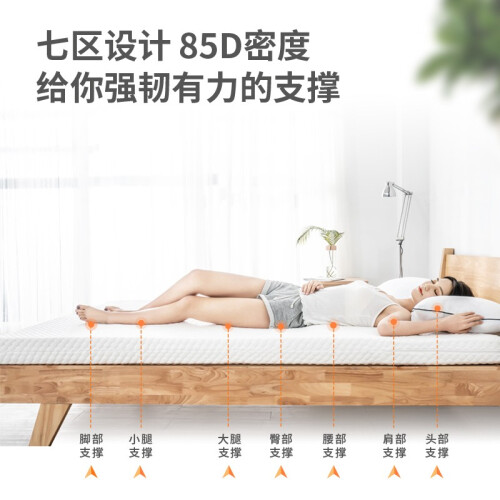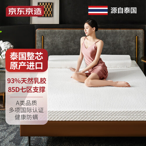 作为京东自有品牌,京造项目起始于2017年9月,对标网易严选、米家有品,现有家居、厨具、箱包等产品线,定位高性价比,有品位有调性~京造这款5cm厚度的乳胶床垫,有150*200cm和180*200cm两个规格可选,100%棉内套,外套为65%聚酯纤维+35%莱赛尔纤维,床垫精选泰国曼谷三叶橡胶树林的胶液,天然乳胶含量达93%,蜂窝式气孔可帮助散发睡眠中的湿气和热量,七区承托设计,床垫密度85D,支撑性能良好。