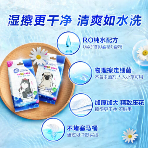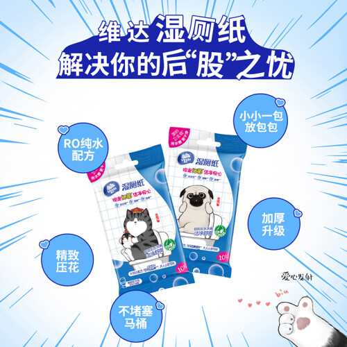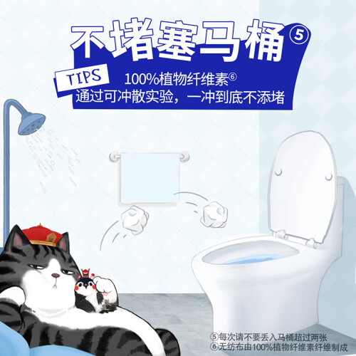 维达是我国有名的纸品湿巾品牌,这款湿厕纸主要原料为RO纯水,不含杀菌剂;全新压花可冲散无纺布,加大尺寸可折叠擦拭不脏手。适合在家或外出时,如厕后清洁使用,可搭配卷纸共同使用,干湿搭配屁屁更干净。外包装印有“吾皇”和身边的小跟班“巴扎黑”一起组成了一套具有水墨风格、中国特色的动漫CP。曾受到猫奴们的一度追捧。