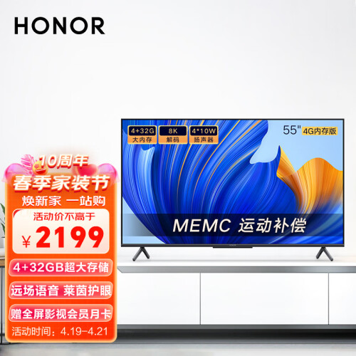荣耀智慧屏X1系列(2022款),包括55英寸、65英寸等版本,屏幕刷新率为60Hz,拥有92% DCI-P3广色域,支持MEMC动态补偿;4GB内存+32GB存储空间,支持8K视频解码;采用4*10W扬声器系统,支持31段EQ调节+Histen音效算法;搭载全新沉浸式Magic UI,支持魔法控屏、一碰投屏、4K HDR10无线投屏等操作;采用6MIC远场语音系统,内置YOYO语音系统,全面屏设计,屏占比94%;提供3个HDMI2.0接口、1个USB3.0接口等。