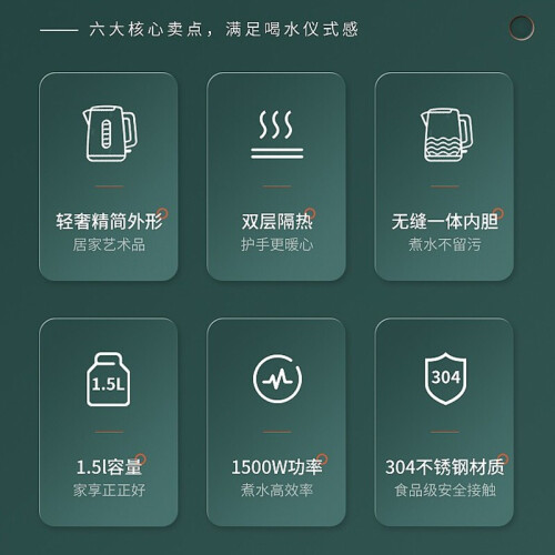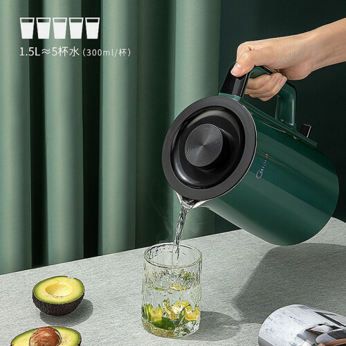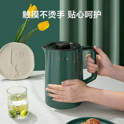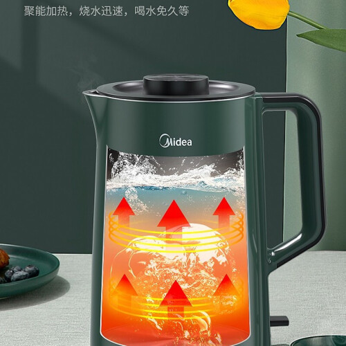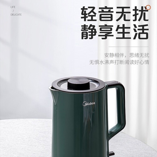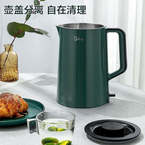 Midea 美的 MK-SH15M110 电热水壶 ,复古配色,1.5L容量,分离式壶盖,轻松接水易清洁,开盖不溅水。外塑料内钢双层防烫保温,1500W功率,304不锈钢一体无缝内胆,底部线圈可收纳,U型壶嘴平滑导流不四溅。