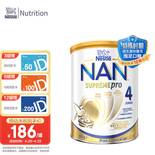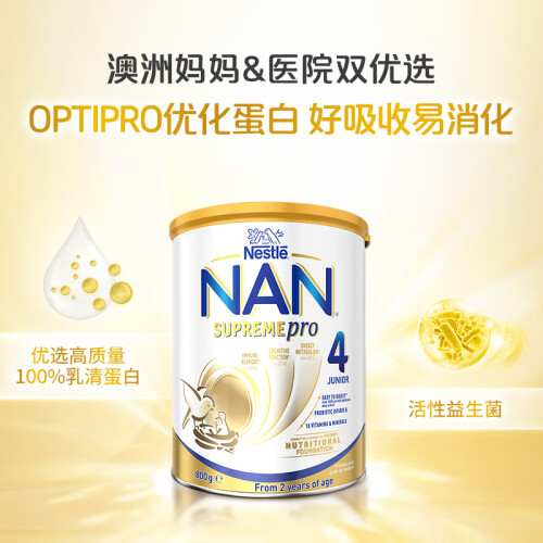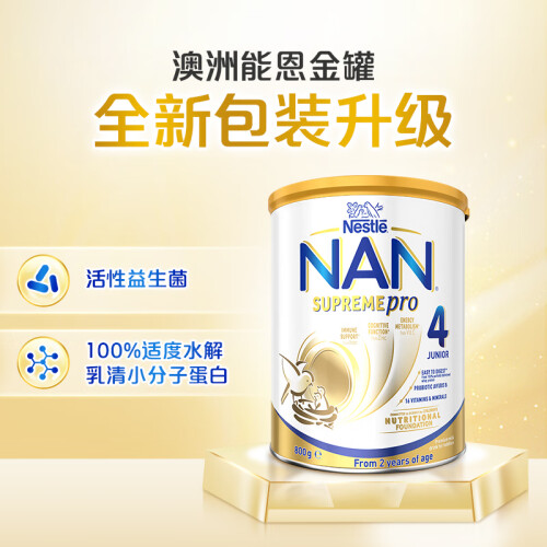 Nestlé 雀巢 超级能恩pro系列 儿童特殊配方奶粉 澳版 4段 800g,特别添加活性益生菌,激发宝宝天然保护力。Bb-12优选明星菌株,130+项临床研究。3.2亿CFU益生菌丰富添加,每杯配方奶菌株含量,40°C温和解锁益生菌活性。