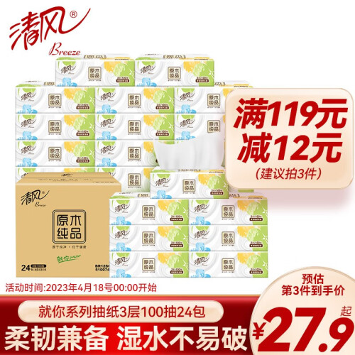更多心相印 茶语丝享系列 抽纸 3层*130抽*24包(132*190mm) *5件