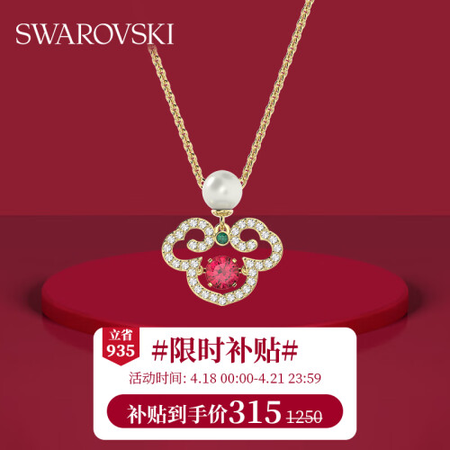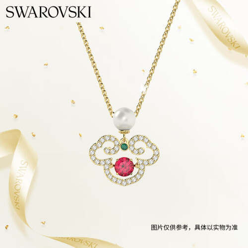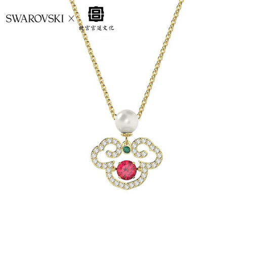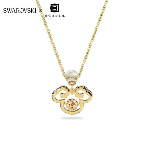 这款链坠由施华洛世奇与故宫宫廷文化共同设计。这款精致的链坠造型隽永别致,其设计灵感来自故宫博物院的馆藏文物。这款链坠除了展示施华洛世奇仿水晶和红色 Dancing Stone的魅力,还以悬垂在典雅镀金色调饰链的仿水晶密鑲「如意」标志加以点缀。