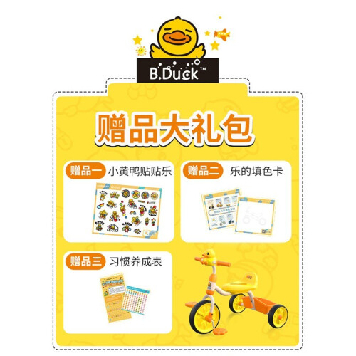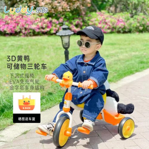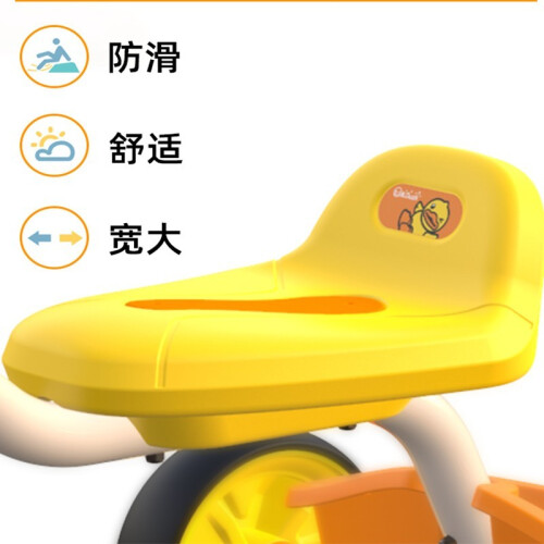 小黄鸭儿童三轮车,颜值爆表,车身轻便,135度限位转向,防侧翻设计,可有效锻炼宝宝平衡感,更强承重,环保材质,开发左右脑,限位转向,车体稳固,降噪静音。