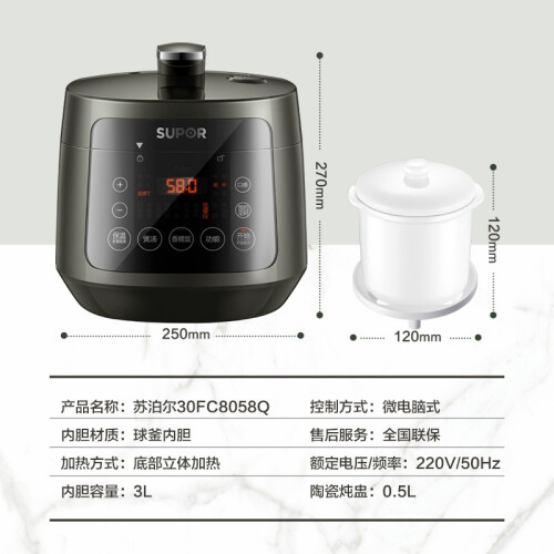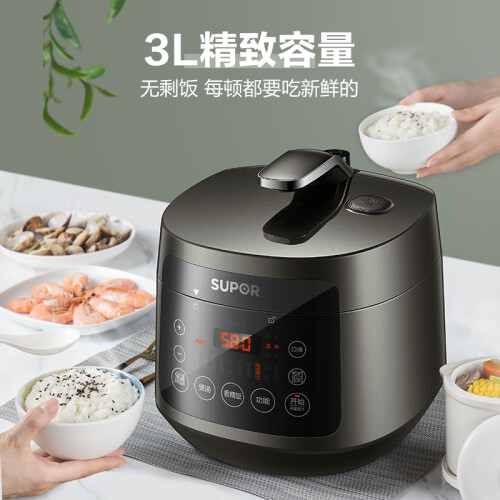 苏泊尔(SUPOR)这款型号为SY-30FC8058Q的电饭煲,专为现代家庭设计,3升球釜内胆,完全可满足日常2-3口之家的日常烹饪需求。除煮饭、煲汤外,产品还特有低温烹饪和发酵功能,超宽的40°-114°温域控制,可用来制作酸奶、溏心蛋,扩展出更多实用功能。为保证控温精准,底部设计有高精度感温探头。设计有一键排气,快速释放压力。