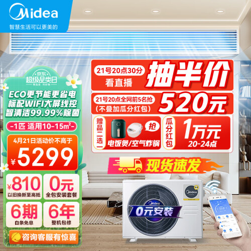 Midea 美的 KFR-26T2W/B3DN1-LX(1)Ⅲ 中央空调 一拖一 1匹 全直流变频技术,节能高效两兼顾,多种风速精准调节,满足不同家庭成员和场景的送风需求,贴心呵护小孩、老人、孕妇等敏感人群,采用3D出风面板,立体式摆动送风,气流柔和均匀出风凉而不冷,久吹也不用担心会着凉。