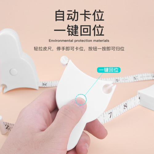 正面厘米单位、反面英尺单位,刻度清晰,方便同时使用。环保材料,耐磨耐摔。自动卡位,一键回位。