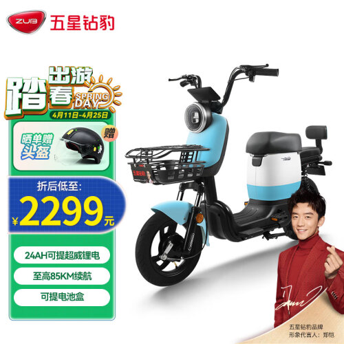 五星钻豹TDT22Z新国标电动车,3C认证,48V24AH可提锂电池版本,400W动力电机使用期间持续充沛、稳定的电力供给,钢丝轮胎高碳钢链条,LED高亮大灯,高清仪表遥控报警。