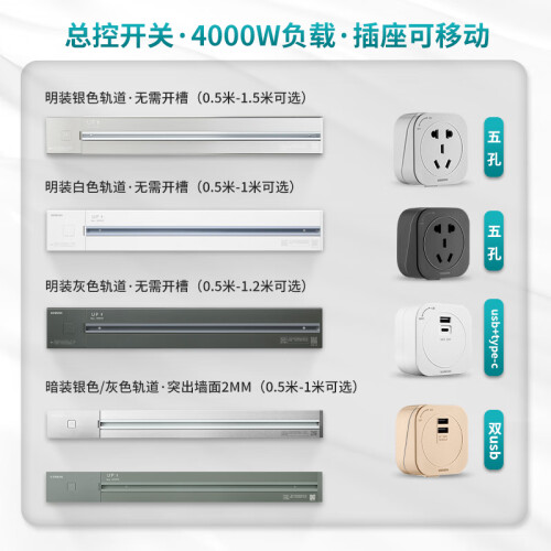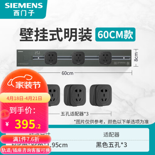 当前的位置: 首页 > 今日值得买 > 西门子(SIEMENS)灰色轨道插座可移动墙壁挂式明装插座 无线插排/接线板/电力滑轨 60cm轨道+五孔*3 银色插座