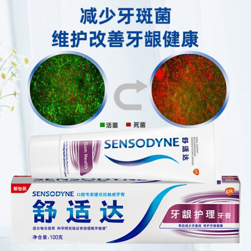 舒适达(SENSODYNE)推出的这款牙膏,添加钾离子和氟化钠等成分,有效缓解牙本质敏感并阻击牙神经电冲动,因而减轻食物的冷热酸甜刺激;坚固牙釉质,预防蛀牙。建议每天使用两次,可为牙齿提供抗敏感保护。