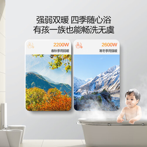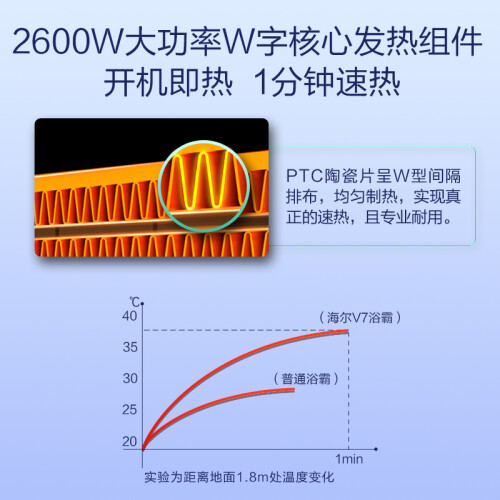 内置优质陶瓷PTC,高效率转化热能量,制暖速度快,秋冬洗澡随心不用久等,实现真正的速热,且专业耐用。