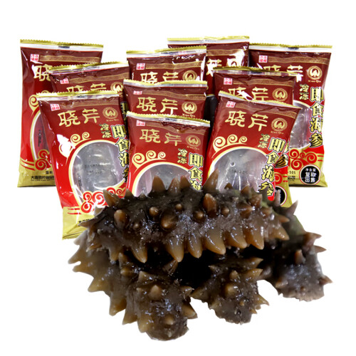 此款晓芹 大连冷冻即食海参是大连海参地理标志保护产品。选用大连鲜活海刺身为原料,所有海参都采自洁净海域,后经过煮制、巴氏杀菌等工艺加工而成,双层包装,口感软糯有弹性,开袋即食,营养十分丰富。每根海参都用独立包装,避免磕碰对海参的损害,适合家庭食用。