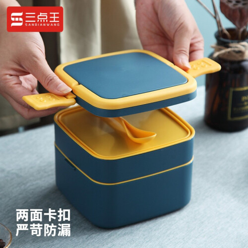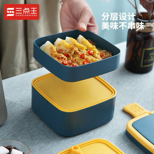 双层设计,美食不串味。层层防漏,密封不滴漏。两面卡扣,严苛防漏。食品接触PP材质。手提设计,外带无忧。
