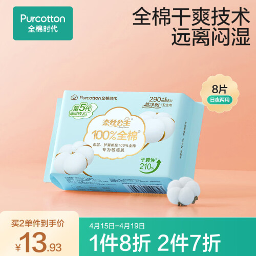 当前的位置: 首页 > 今日值得买 > 全棉时代 卫生巾奈丝公主超净吸系列亲肤超薄日夜两用290MM 8片/袋