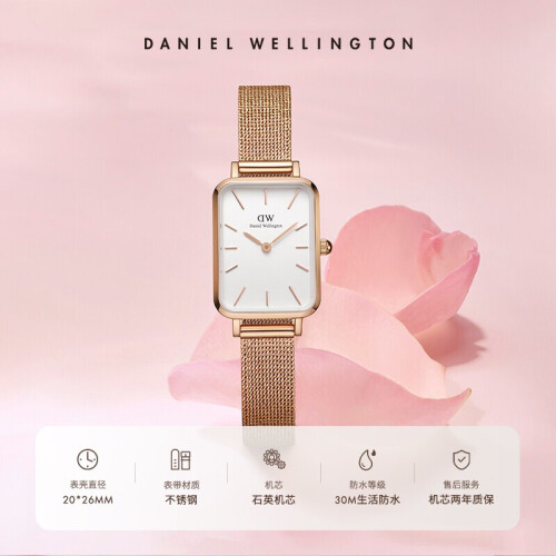 丹尼尔惠灵顿(Daniel Wellington)推出的这款20毫米腕表,搭载石英机芯,走时稳定。具有30米防水性能,满足日常防水需求。采用人工蓝宝石水晶玻璃表镜,耐磨损且通透性好,读时清晰。方形表盘配有条状时标、双针指示,时尚简约。