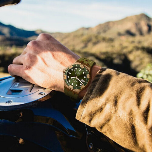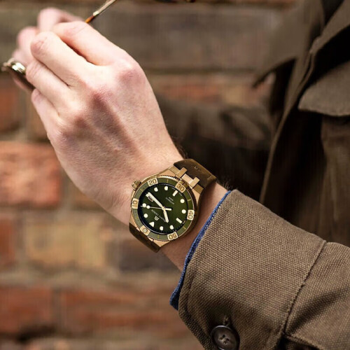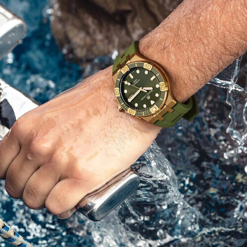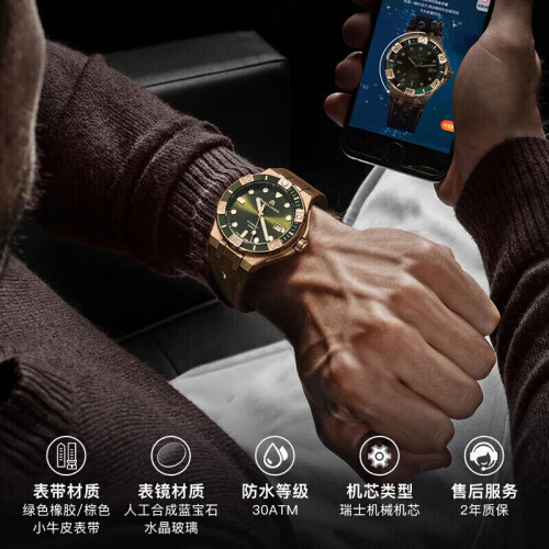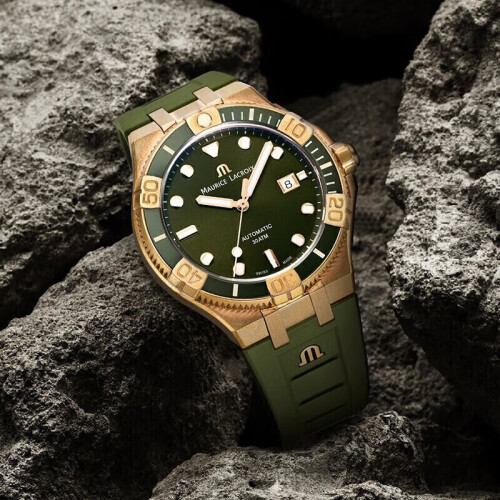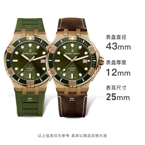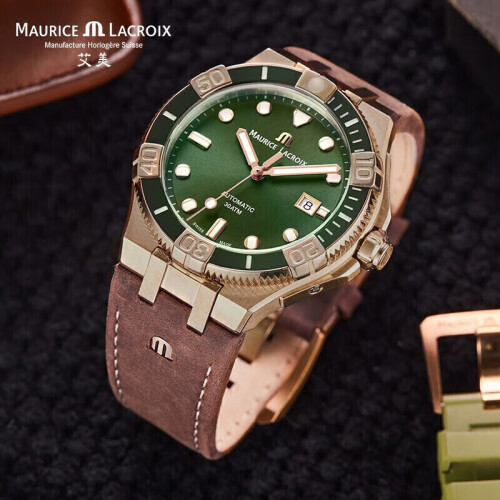 MAURICE LACROIX 艾美 AIKON系列 男士机械腕表 AI6058-BRZ5B-630-M 青铜款,表壳取材一种特殊合金,能随着时间推移呈现出棕褐色的古雅光泽,但需注意青铜氧化效果因实际佩戴情况而不同。防水深度达300米,同时防水系数达300米螺旋式设置作为专业潜水腕表配置高质防水。单向旋转的陶瓷表圈,别具一格的设计,转动腕间的动感风格,不失矫健风范。威震一时独领鳌头的避震器,瑞表之中应用广泛的抗震代表之作,满足您对瑞士匠芯的品质之需。时标呈圆形与矩形,并覆以Super Luminova夜光涂层,巴顿式指针大而精美,展现AIKON多功能的特质。采用人工合成蓝宝石水晶镜面,硬度高,抵御日常佩戴中的小刮擦。
