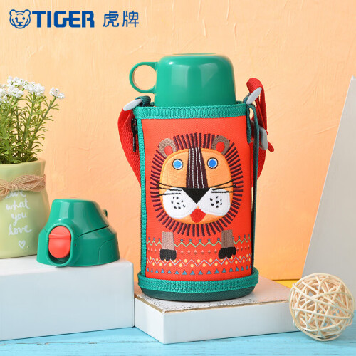 虎牌儿童保温杯保,一键式按钮,中栓采用一键式按钮设计,按下可倒出水至杯盖里,密闭不漏水。中栓可拆解,中栓可拆卸分解清洗,宝宝使用更放心。内外有螺纹,杯子内外都有螺纹,不易脏污,杯盖吸管两用杯。硅胶吸嘴,硅胶材质的吸嘴非常柔软,保护宝宝娇嫩的小嘴。附精美便携袋,外出方便携袋,背带可伸缩调节长度,游玩更省心。