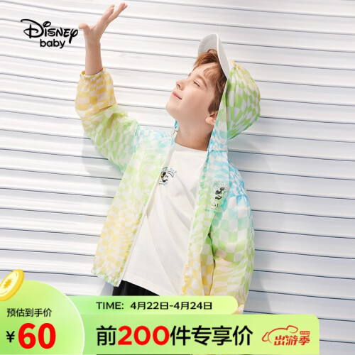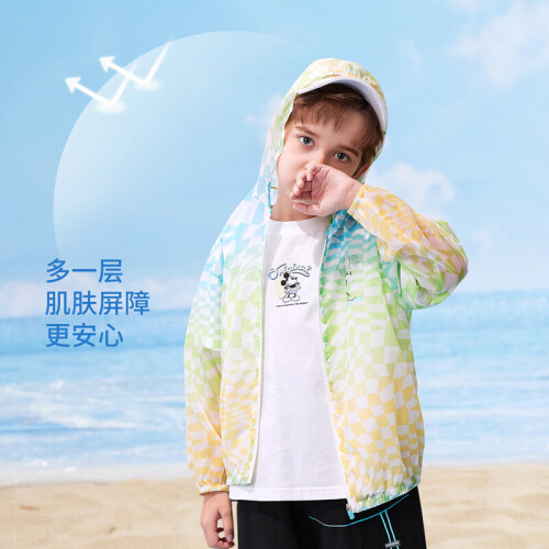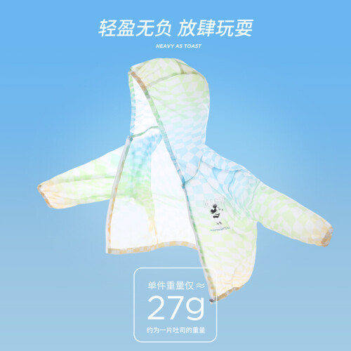 Disney 迪士尼 男童连帽外套,柔软轻薄,不粘身360度自由呼吸,阳光下尽情奔跑,轻薄便携易收纳,帽子内隐形口袋设计方便收纳。