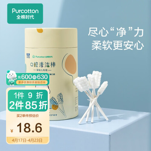 全棉时代以“全棉改变世界”为愿景,从朵棉花开始,创新研发纯棉柔巾、奈丝公主卫生巾、奈丝宝宝棉尿裤三大核心,单品与清洁护理、孕育护理、女性护理、服装服饰、家居生活等七大品类,奠定了在母婴领域、生活用品领域的强大口碑,引领安心,幸福,可持续的全棉生活方式。0-2岁宝宝口腔问题,别忽视,如清洁不当,引发多种口腔问题,一支清洁棒,解决多种口腔问题,柔软细腻,呵护宝宝娇嫩肌肤,双重波浪型刷头,洁净不残留,增加与口腔的接触面,按摩牙龈,全面清洁, 光滑纸柄触感,给宝宝贴心呵护。