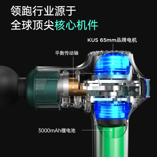 KUS Pro 8 mini筋膜枪 专业款,16mm深度振幅,保持3500转高强度的击打频率,10分钟高效率放松。采用65mm无刷电机,稳定故障率更低,比普通电机强4倍寿命,6个专业按摩头,6小时续航。3000毫安电池更持久。具有科技感的工学设计,T型一体工学设计,侧面线条构造灵动,背面呼吸灯具有未来科技感。超过10万次按键测试,每天按30次,稳定使用10年以上。双组份静电烤漆工艺,有效抑制细菌、耐腐蚀和耐冷热。采用的AI智能芯片,能够快速处理冲击反馈的数据,进而控制电机的冲击乱度。