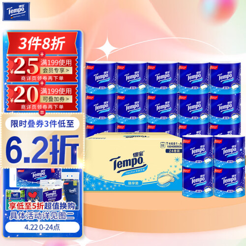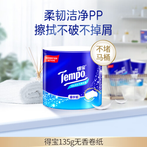 当前的位置: 首页 > 今日值得买 > 得宝(TEMPO)卷纸 无香4层*135g*24卷柔韧可冲散 卫生纸 纸巾 有芯卷筒纸整箱