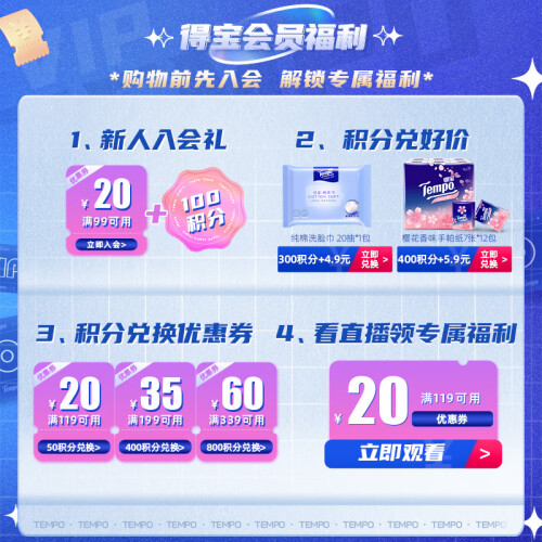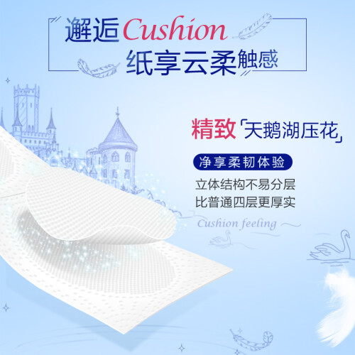 本款得宝有芯卷纸立体结构不易分层,比普通四层更厚实;两层柔软+两层柔韧,为你备添柔滑棉感;敏感部位干湿搭配,深层洁净呵护更安心。淡雅的樱花香氛,随着空气蔓延每一处,留下精致的温柔。精致天鹅湖压花,倍添柔软棉感,柔软一触倾心。