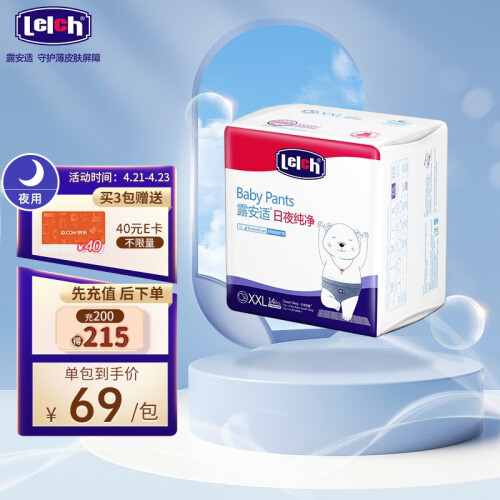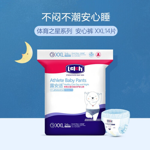 Lelch 露安适 体育之星 婴儿拉拉裤 XL20片,日用2.03mm薄护瞬吸干爽芯,绵软柔和,瞬吸干爽;蝶翼三重防漏,有效防止侧后漏;适动超长型腰腹围,3倍伸缩;专利花瓣型散热面层,肌肤花漾舒爽透气。