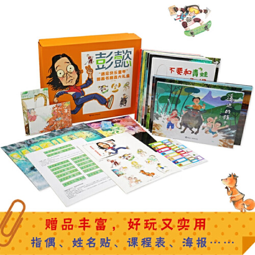 本礼盒精选了图画书大咖彭懿的原创图画书11册,如梦似幻的唯美画风,充满宫崎骏般奇思妙想的瑰丽故事。全世界都没有几个人能创作的独特摄影图画故事书,根据真实口述故事改编的童年糗事、趣事一箩筐,和孩子一起重温我们记忆中那美好快乐的童年,好玩又实用的丰富赠品:有非常实用的姓名贴、课程表,也有非常好玩的角色形象指偶和场景海报,可以跟孩子一起发挥想象力,玩扮演游戏,也可以当装饰品,装饰书柜、书桌。