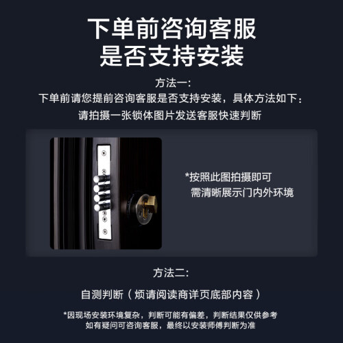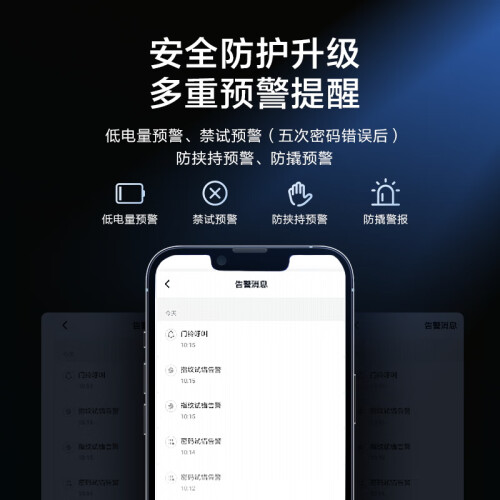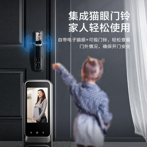 高性价比:不到千元即可实现一体设计+全自动锁体+本地猫眼+App智控+多重预警提醒 硬件差异:可视猫眼+ 4.0英寸本地大屏 + 隐藏式指纹头+4200毫安时锂电+C级防盗锁芯 安全升级:低电量、防撬报警、试错报警。异常及时即时推送,30位虚位密码,防止偷窥;防劫持功能,意外发生输入特殊密码警示家庭成员。 开锁便捷:访客按下门铃,门锁自动抓拍,主人核对信息后可远程授权开锁; 指纹、密码、NFC(安卓手机、手环、手表)、感应磁卡、临时密码、远程解锁、机械钥匙九大开锁方式,高效满足不同场景需要。 设计简洁:简约线条设计,适配多种居家风格。 售后无忧:三年质保,第一年免费换新。