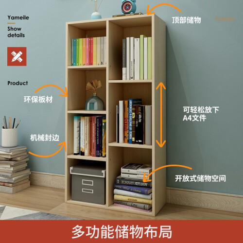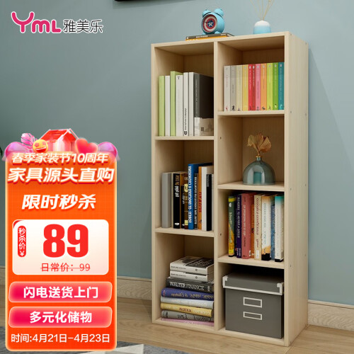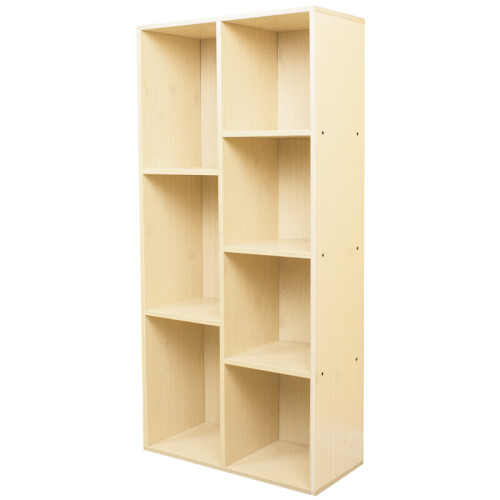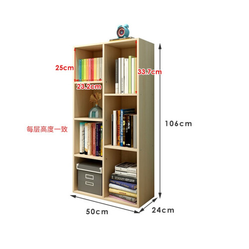 雅美乐Y3282七格书柜,主体采用刨花板,安全无毒,七格错位设计,安装简单外观大方。尺寸为50*24*106厘米,根据实际情况可选择横放或者竖放。