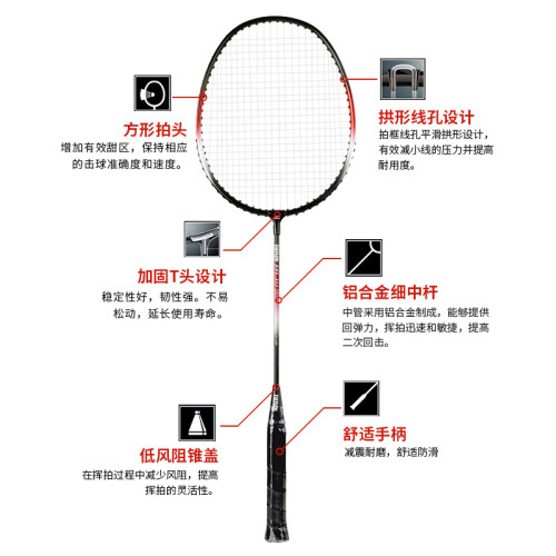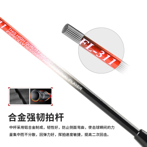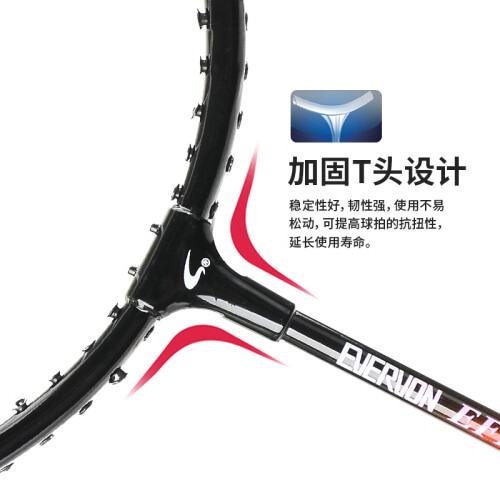 EVERVON 310-311 羽毛球拍,采用方形拍头,增加有效区,能保持相应的击球准确度和速度,拱形线孔设计,拍框线孔平滑拱形设计,有效减小线的压力并提高耐用度,加固T头设计,稳定性好,韧性好,铝合金细中杆,能提供回弹力,挥拍迅速和敏捷,舒适手柄,减震耐磨,舒适防滑。