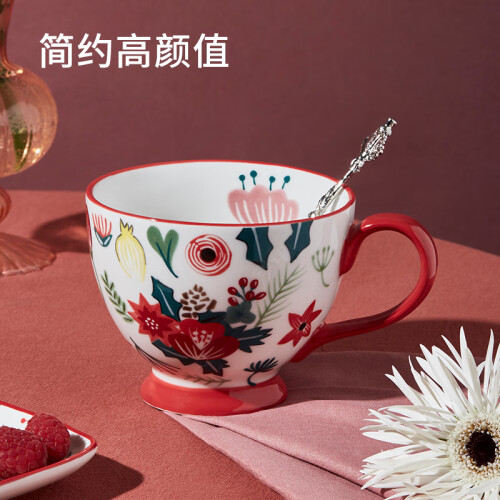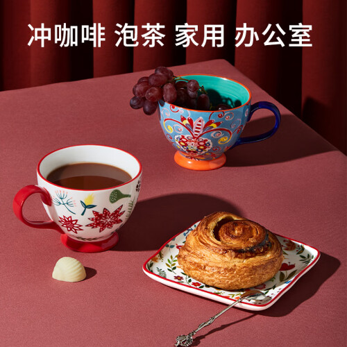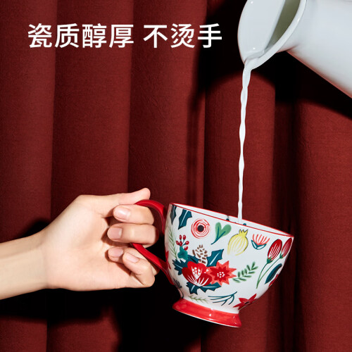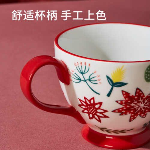 此款陶瓷马克杯用料安全无毒,并经1320℃高温烧制而成,外观采用色彩极为浓烈的美式风格进行绘制,釉中彩工艺可以在高温中烧制不褪色,细腻的瓷质质感,即使把手、杯口线条、杯底等细微之处都采用手工上色,热情的红色也展现了对生活的活力与热情,结合人体工学设计,握感舒适、厚实圆润~