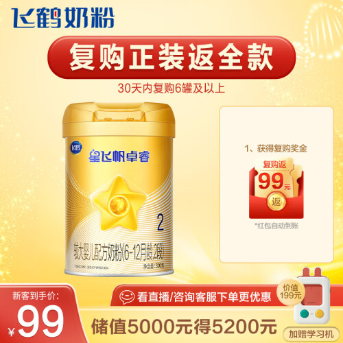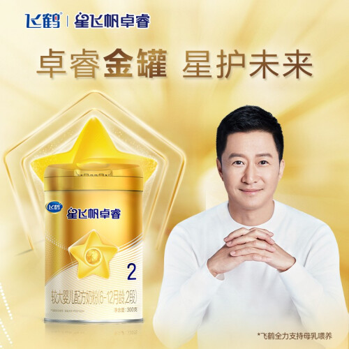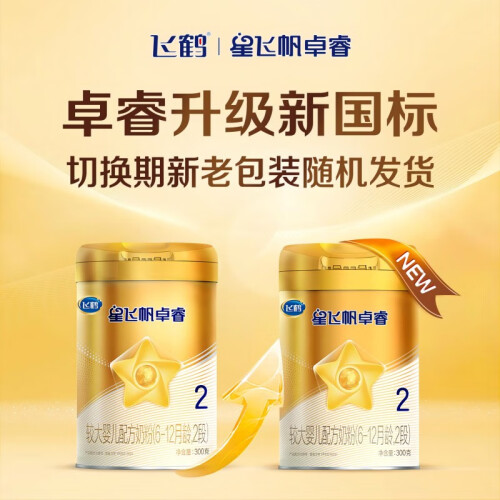 FIRMUS 飞鹤 星飞帆卓睿系列 较大婴儿奶粉 国产版 2段 300g,精萃乳源1/20000珍稀免疫蛋白,另含5种核苷酸。纯净锁鲜,贴心保护。北纬47°优质奶源带,飞鹤自有牧场,新鲜生牛乳制作。