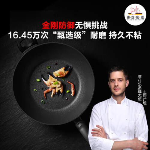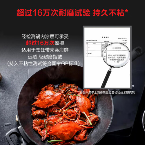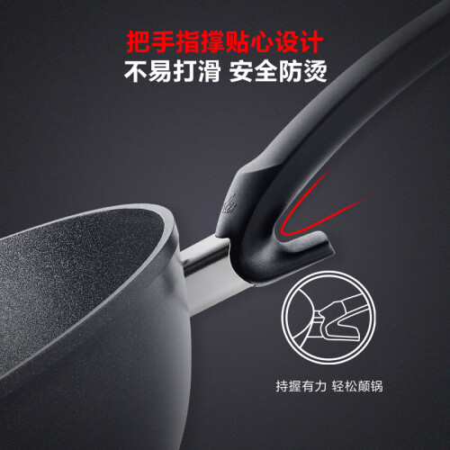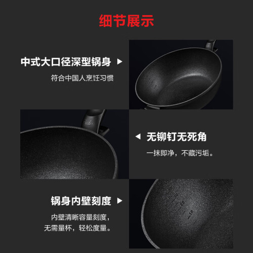 选用铝合金材质,三维立体砂化技术,多道喷涂打磨工序,增强不粘锅耐磨损性,延长不粘锅使用寿命,涂层不含PFOA,挂立式挂空设计,方便收纳,人体工学把手,握感舒适,方便清洗。