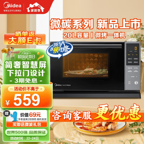 当前的位置: 首页 > 今日值得买 > 美的(Midea)微碳系列 下拉门微波炉 附烤箱功能 杀菌家用 800w变频 光波速热(PC20M5T)