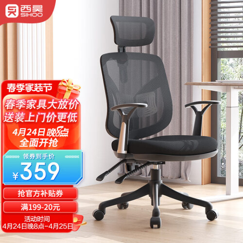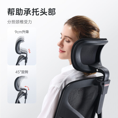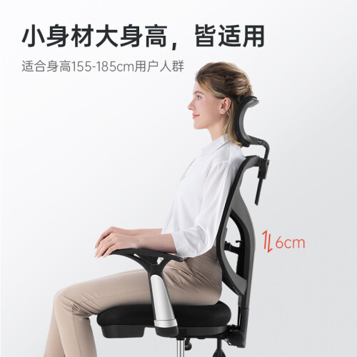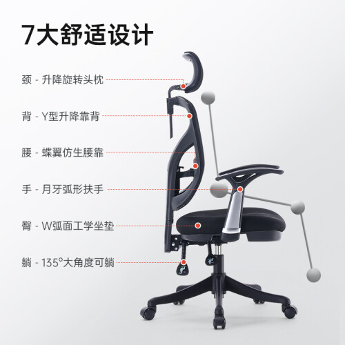 SIHOO 西昊M56人体工学电脑椅,升降头枕,最高可升降10cm脖颈可舒适倚靠;W弧工学,曲线坐垫,给你舒适做感;升降腰枕,支撑腰部受力,加棉弹力腰枕,让腰部软着陆;升降椅背,肩背不落空;90°-125°任意角度锁定,后仰小憩好倚靠;钢制抛光椅脚,安全稳固承重力强,圆弧式扶手固定支撑手臂;安装方便,附送的手套和开箱用的工具,很贴心。