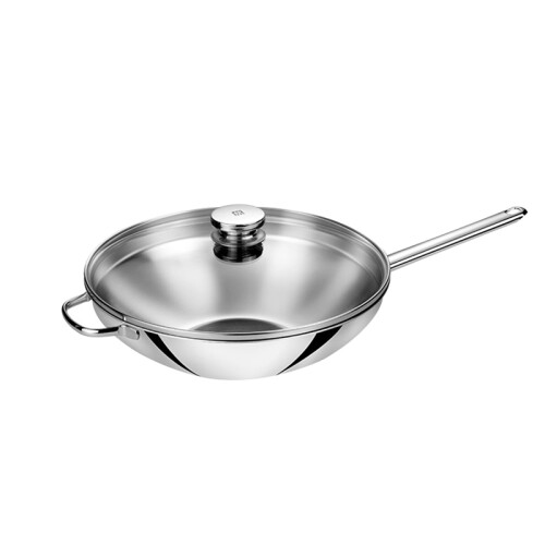 双立人拥有超过2000种的不锈钢刀剪餐具、锅具、厨房炊具和个人护理用品,开创了摩登厨房理念,让烹饪成为一种享受,带给人们看得见的完美品质和生活情趣。 双立人单柄中华炒锅,采用5层钢铝钢通体压制技术,传热快,保温好,底部和边缘均匀受热,烹饪过程节能又省时。比利时全进囗锅身,SILVINOX表面处理工艺,去除不锈钢表面的铁质和杂质,使得锅具表面像银质一样亮白,不易留下划痕,便于清洁保养。多种热源适用于燃气、电炉、电陶炉、电磁炉等家中常见炉灶,是不挑炉灶的好锅具。中式烹调适用于多种中式烹调方式,煎、炒、烹、炸、炖皆可。锅总长57.6cm,锅体直径32cm,锅深(含盖):17cm。