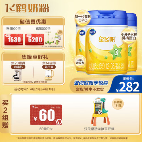 飞鹤始建于1962年,从丹顶鹤故乡黑龙江齐齐哈尔起步,是中国最早的奶粉企业之一,同时也是国内第一个建立起完整奶粉全产业链的乳企,旗下拥有星飞帆、超级飞帆-臻爱倍护、臻稚有机等系列产品,星飞帆奶粉是比较畅销的系列,很多宝爸宝妈选择奶粉首要关注的就是奶源,星飞帆的奶源来自北纬47°黄金奶源带:扎龙湿地,这里日照充沛,牧草资源丰富,是确保奶源品质的重要条件。星飞帆用新鲜生牛乳(鲜奶)制作,挤奶到加工2小时,保证了奶粉的新鲜营养,天然含有OPO,适合宝宝娇嫩肠胃吸收,更适合中国宝宝体质,此外,星飞帆对重要营养素也进行革命性“升级”,益生元GOS升级,低聚果糖FOS升级为低聚半乳糖GOS,促进肠道益生菌增殖,调节微生态平衡,提升肠道保护力。