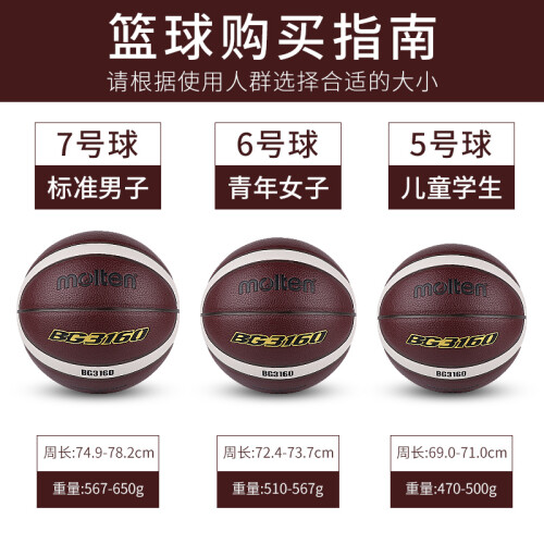 Molten 摩腾 7号篮球 B7G3160 ,有序颗粒表皮,触感均匀。颗粒部加强处理,耐磨性强,触感特久,运球自如。沟筋加宽处理,运球更加省力粘手。投球手感舒适,不偏心,轨迹稳定可靠。