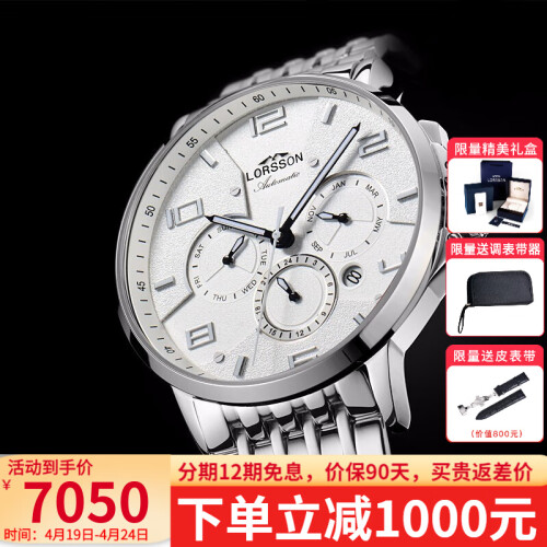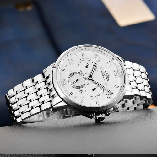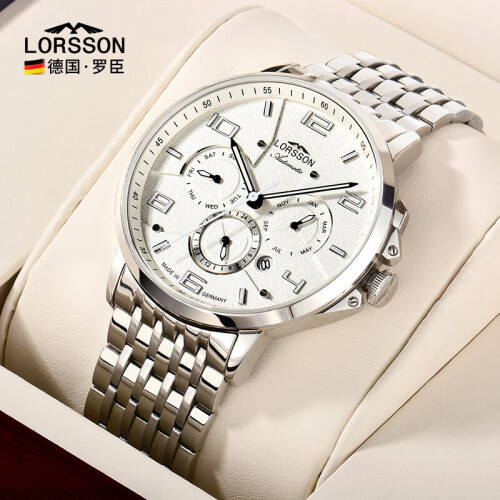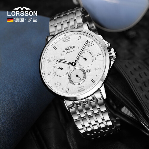 LORSSON 罗臣 匠心系列 男士自动机械腕表 LC3316D7AB,人工蓝宝石玻璃镜面,具有不易腐蚀,不易刮花。通透性强,硬度高,阳光照射下清晰可见。夜光显示,黑暗中助您轻松读时,采用瑞士夜光材质,亮度持续时间长,发光均匀。