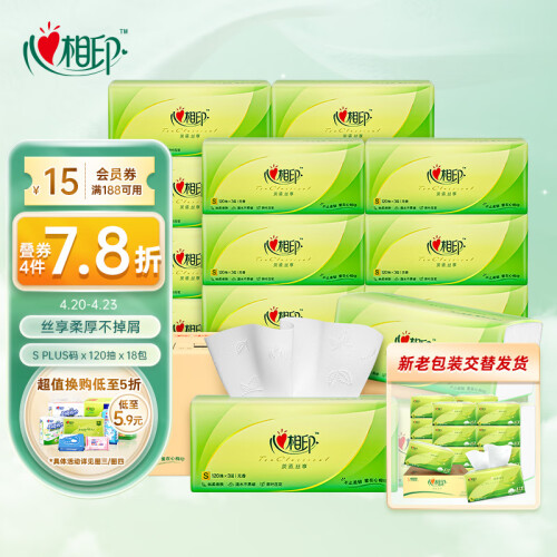 更多心相印 茶语丝享系列 抽纸 3层*130抽*24包(132*190mm) *5件