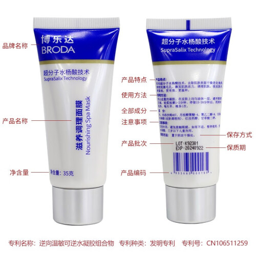 这款滋养调理面膜采用的超分子控缓释专利技术,持久缓慢释放,低刺激无伤害,温和亲肤且焕肤效果显著,祛痘控油,疏通毛孔,双向调节肌肤角质。水杨酸能疏通毛孔,祛除废旧的角质细胞,帮助毛孔里面的油脂进行正常的疏通和代谢。干性皮肤、混合性皮肤可考虑T区天天用,其他部位一周两到三次,水杨酸不仅不会损伤皮肤,反而由于其抗炎作用和诱导角质形成细胞分化成熟的能力,能够使角质层细胞更加成熟和健全,而且水杨酸还具有抗马拉色菌的能力。