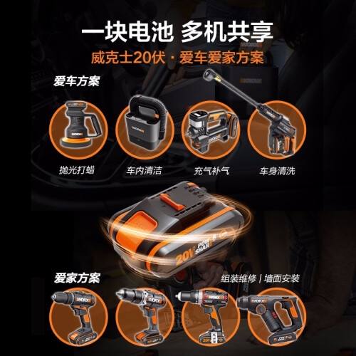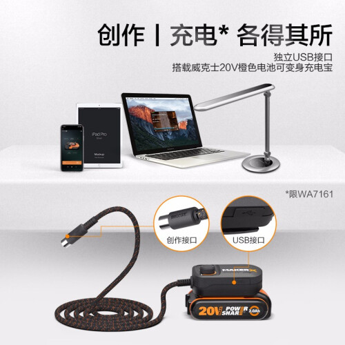 不止“中转站”含独立USB接口*,搭载威克士20V橙色电池,接入数据线即可变身充电宝,满足多种设备充电需求。1.3m电源线柔韧性高可随意折叠,耐磨、耐折、耐压,可控距离更远,覆盖更大工作面。