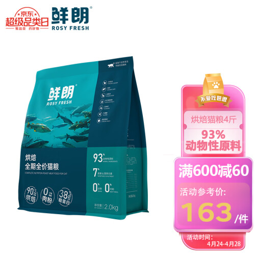 鲜朗烘焙猫粮,1个月以上全猫种适用,95%以上动物蛋白,粗蛋白高达38%,93%纯肉类,采用鲜肉、冷冻保鲜,真正实现不添加0肉粉~