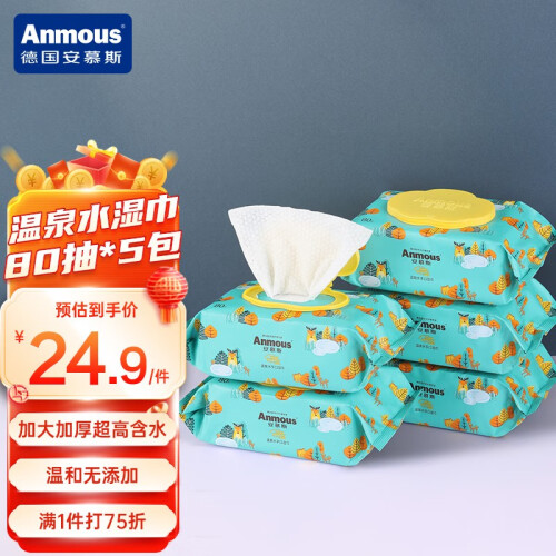当前的位置: 首页 > 今日值得买 > 安慕斯(Anmous)婴儿护理湿巾儿童湿纸巾宝宝手口湿巾纸厚湿巾加厚加大 温泉水80抽*5包