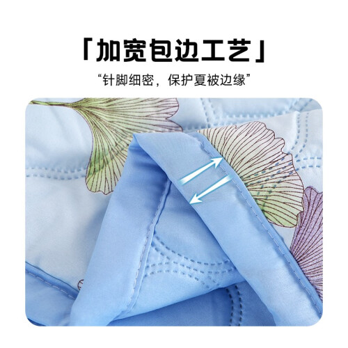 磨毛面料,柔软亲肤透气,亲肤面料,高支高密,手感细腻。针脚细密,保护夏被边缘,耐磨耐用。