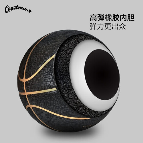 COURTMAN 野球帝 复刻版 7号标志篮球 飘渺金,采用吸湿PU篮球皮革,大幅提升表面粘涩度,有效防滑排汗,内胆采用天然橡胶,弹性优异持久耐用。