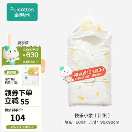 Purcotton 全棉时代 新生婴儿纱布微厚抱被 90*90cm,A类婴幼儿用品,安全类别,不怕宝宝啃咬,裸睡也安心,给新生宝贝柔软温暖的包裹感,让宝宝保持在妈妈肚子里的舒适睡姿,少一些哭闹和不安惊跳,睡得更安稳。